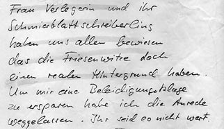 P.S. Falls man Sie in der Zwischenzeit in die örtliche Klapsmühle verlegt hat, dann teilen Sie mir bitte Ihre neue Anschrift mit.