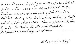 M.F.G. aus Wuppertal schrieb an die Redaktion: